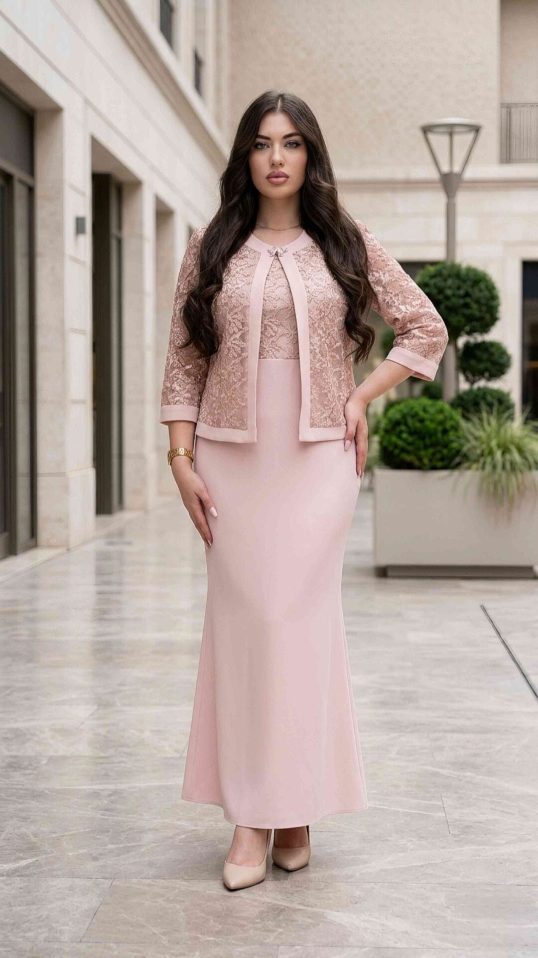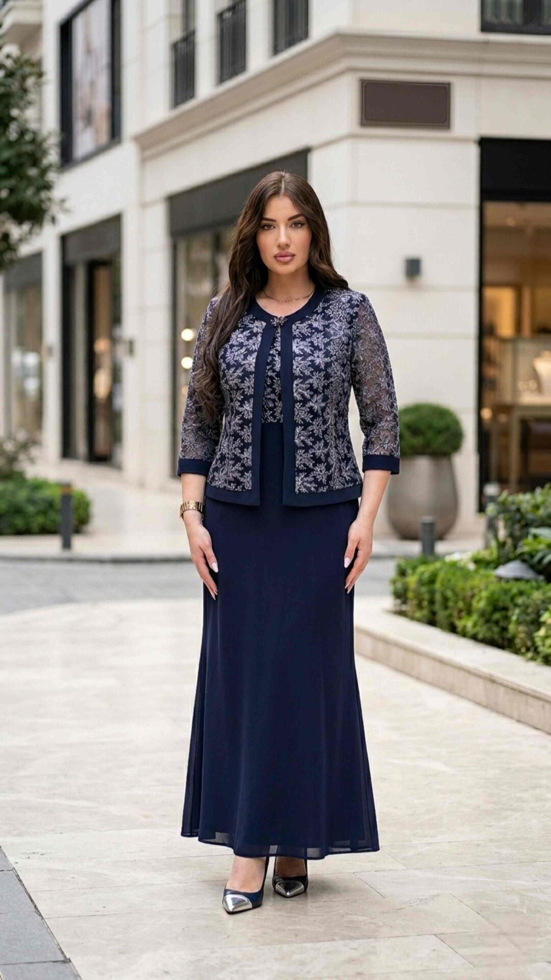 Doğaner Women dantel ceket kadın abiye takım elbise modeli D75, özel günlerde zarif ve etkileyici bir görünüm oluşturmak isteyen kadınlar için tasarlanmıştır. Dantel ceket detayı ile elbiseli takım formunu buluşturan bu model, klasik şıklığı modern bir duruşla tamamlayarak düğün, nişan, söz ve özel davetlerde dikkat çekici bir stil sunar.