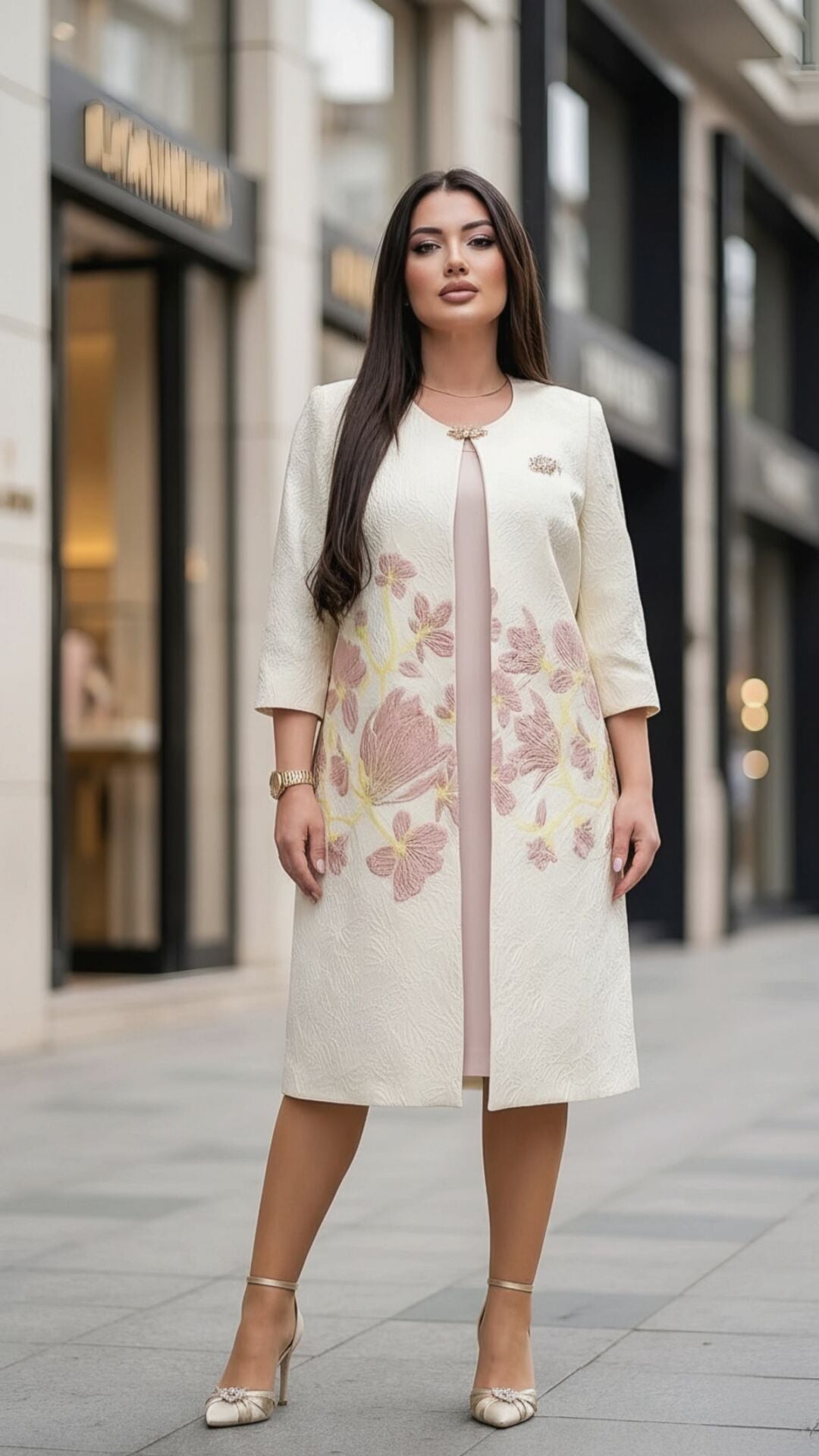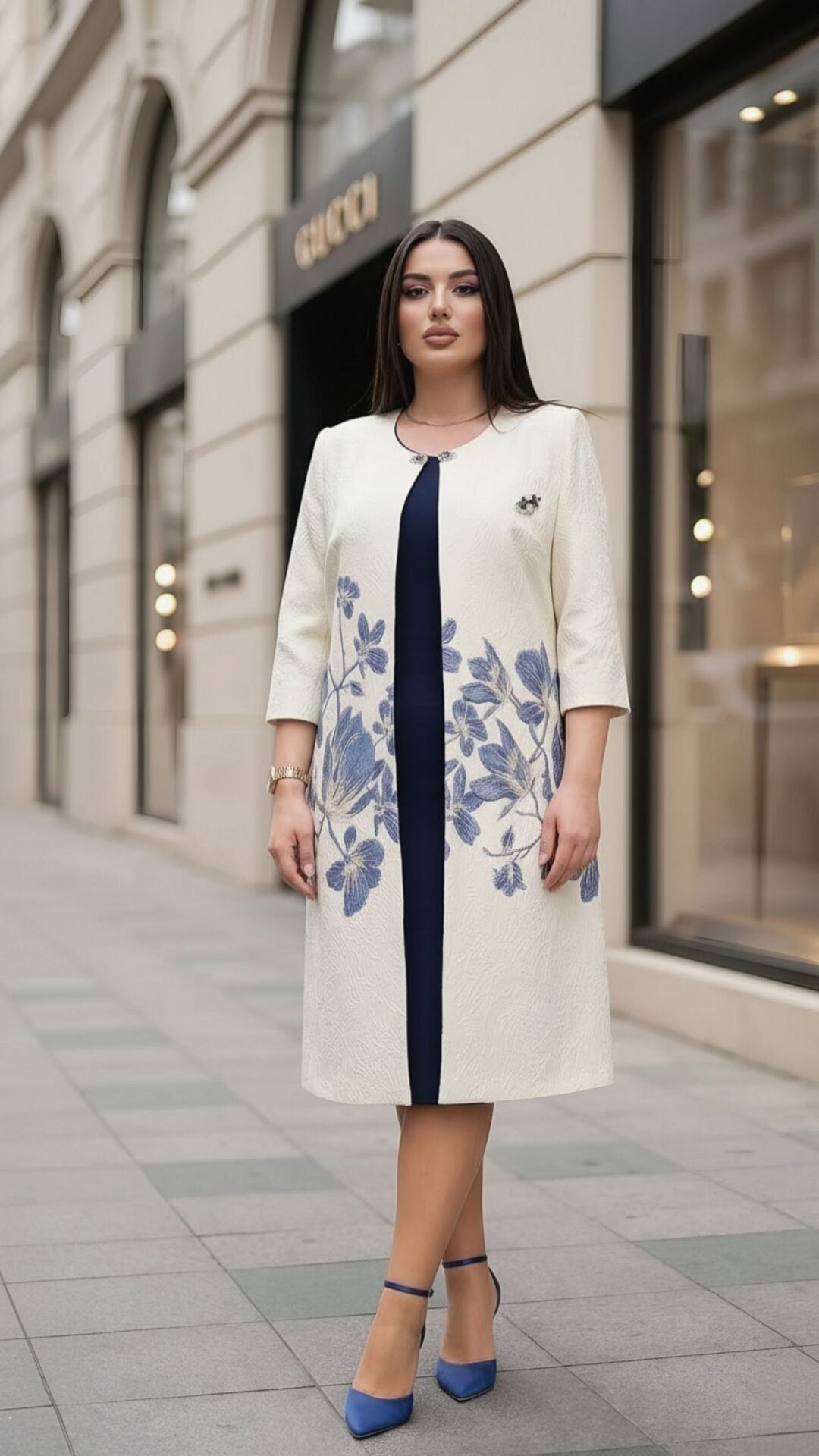 - Çiçek Desenli Jakar Kumaş: Dokulu jakar kumaş üzerine işlenmiş zarif çiçek desenleri ile göz alıcı bir stil sunar.
