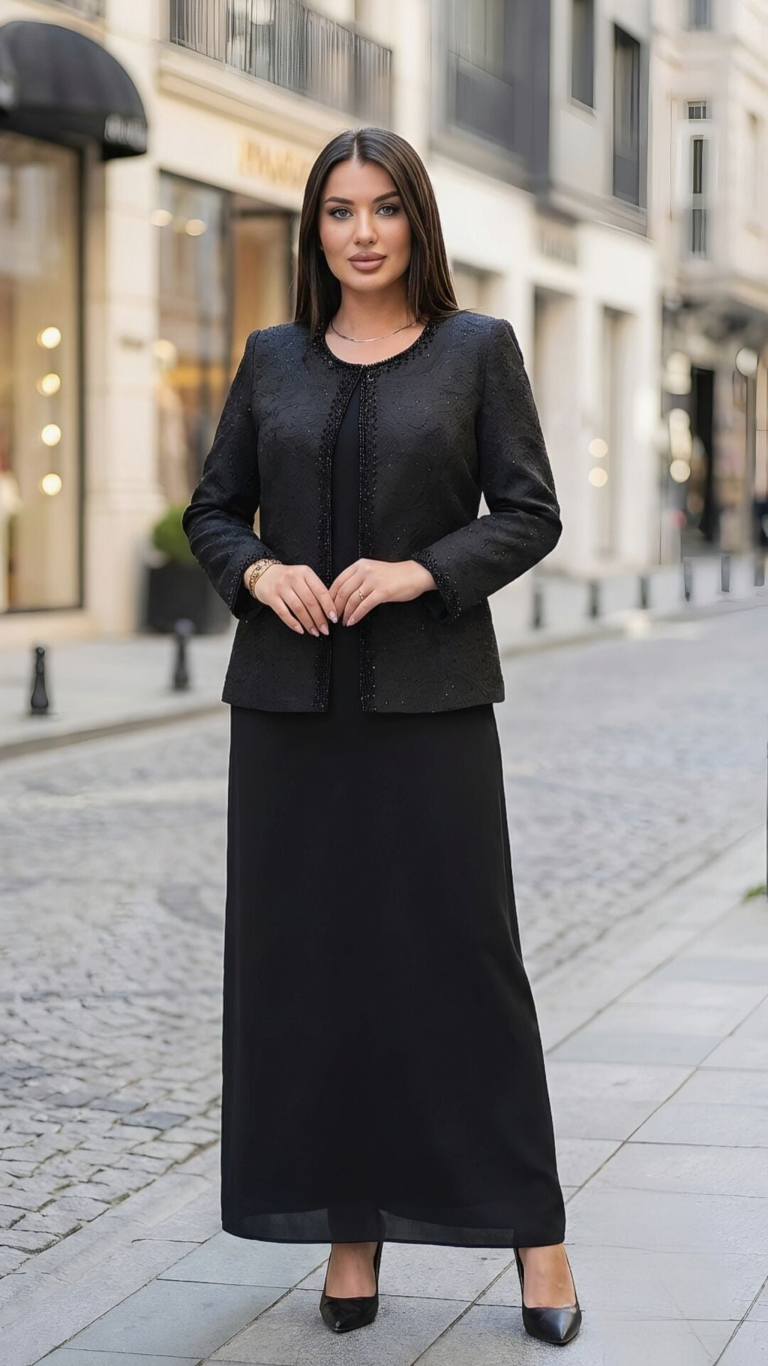 Modern kesimi, zarif boncuk detayları ve şık jakar dokusu ile Model 1345-2, özel gün stilinizi bir üst seviyeye taşır. Hem konforlu hem de gösterişli yapısıyla bulunduğunuz her ortamda dikkat çekici ve zarif bir görünüm sunar.