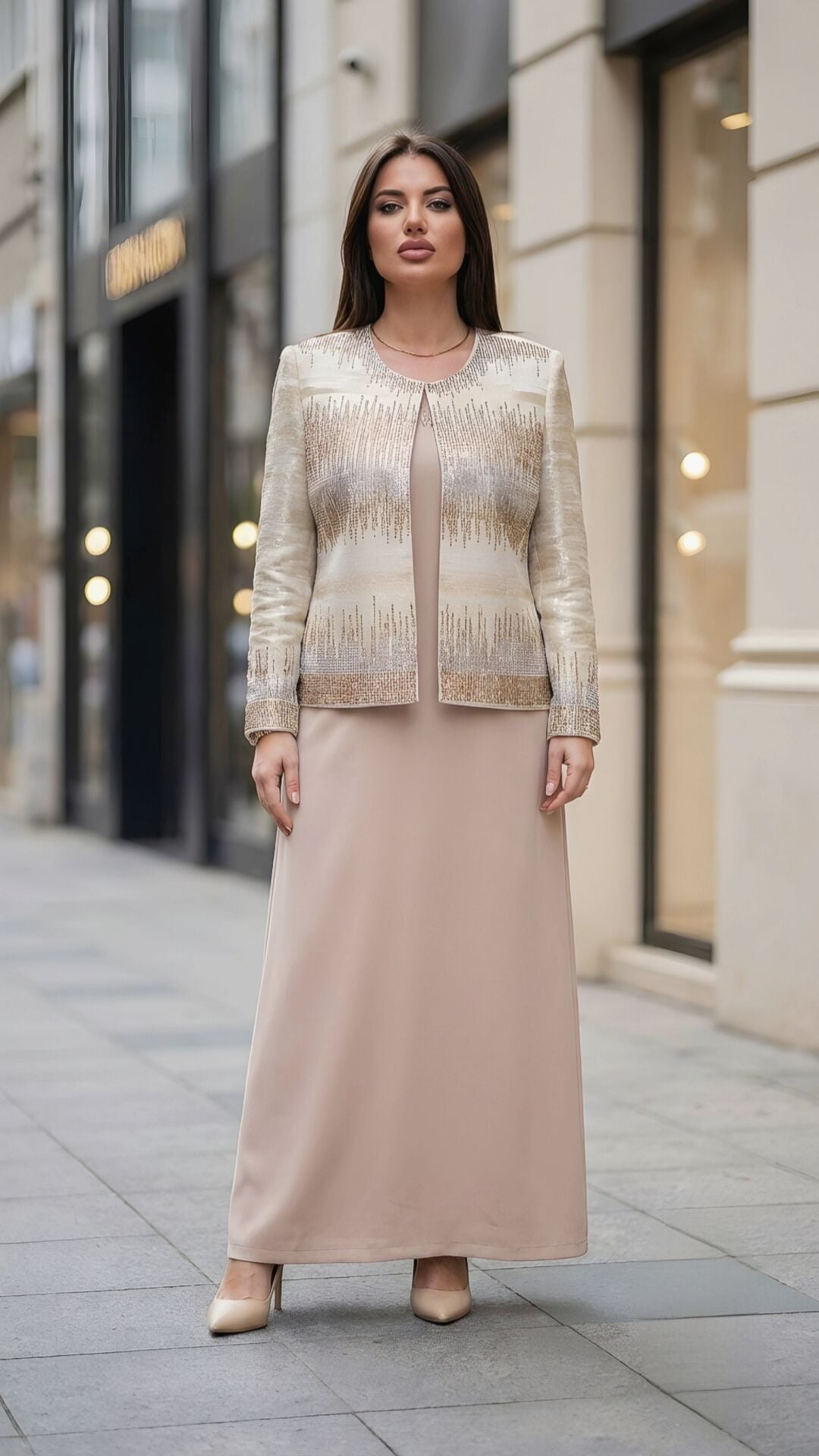 - Jakar Kumaş ve Taş İşleme Detayları: Dokulu jakar kumaş üzerine işlenmiş taşlarla zengin bir görsel şıklık sunar.