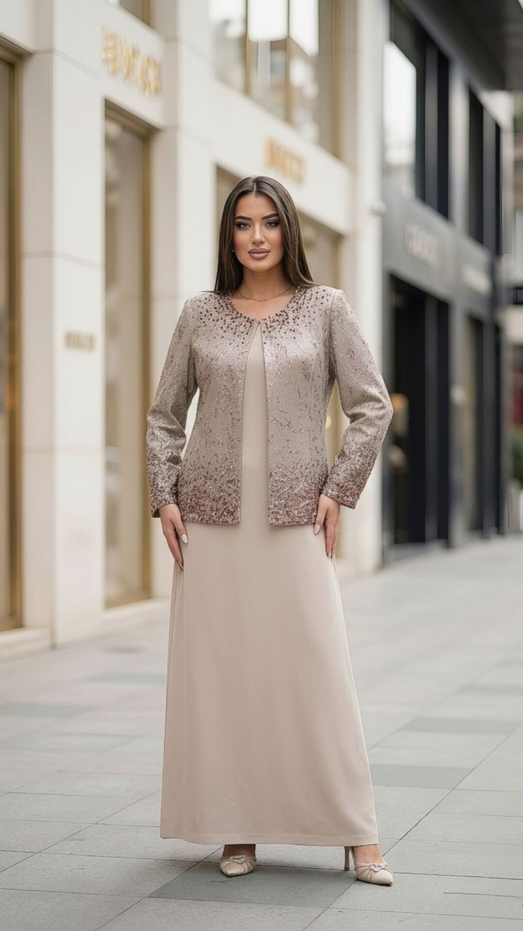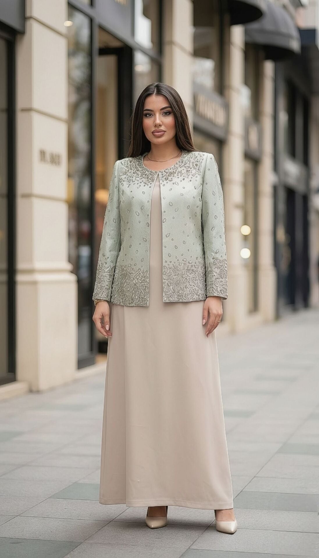 Model 1091, jakar kumaşın asil dokusu ile taş ve inci işlemelerinin zarafetini bir araya getirir. Hem güçlü hem feminen bir görünüm sunan bu özel tasarım, en özel anlarınızda şıklığınızla ön plana çıkmanızı sağlar.