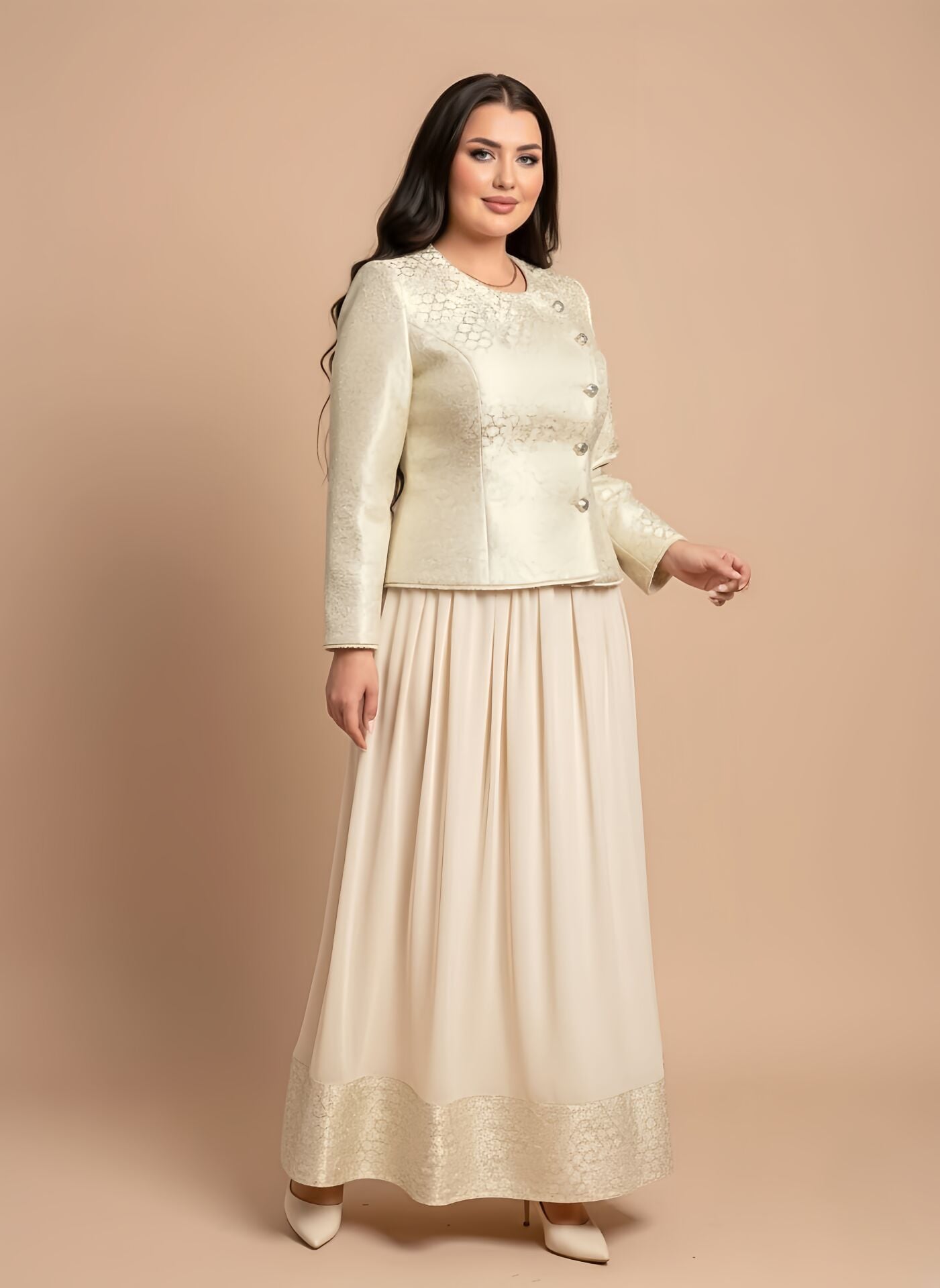 Doğaner Women | Jakar Kumaş, Düğme Detaylı, Etekli Takım Elbise (4397)