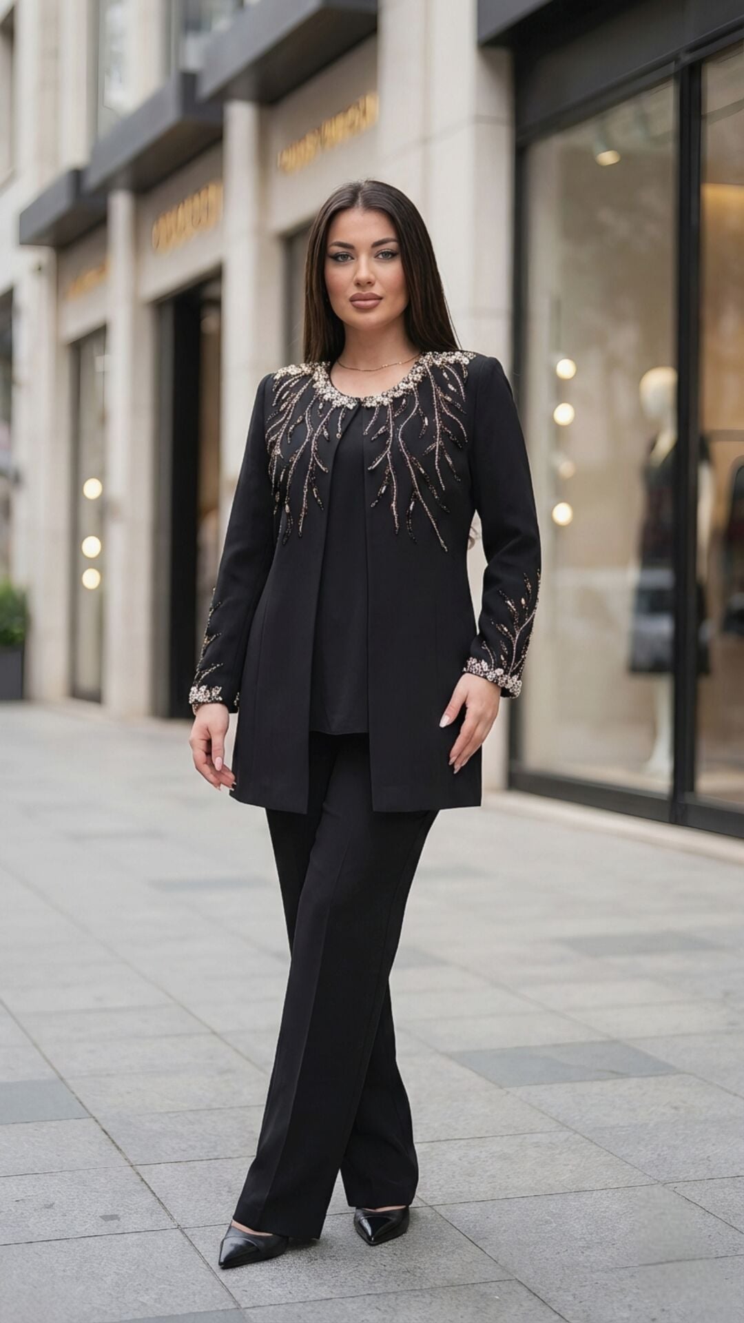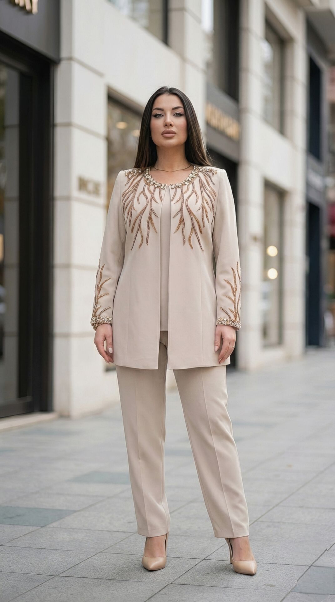Doğaner Women Taş İşlemeli Pantolonlu Kadın Takım Elbise – Model 1312