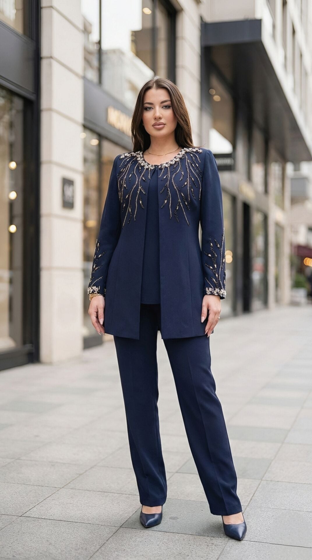 Model 1312, modern pantolonlu takım tasarımı ile zarif taş işlemelerini bir araya getirir. Hem güçlü hem feminen bir görünüm sunan bu özel tasarım, en özel anlarınızda şıklığınızla ön plana çıkmanızı sağlar.