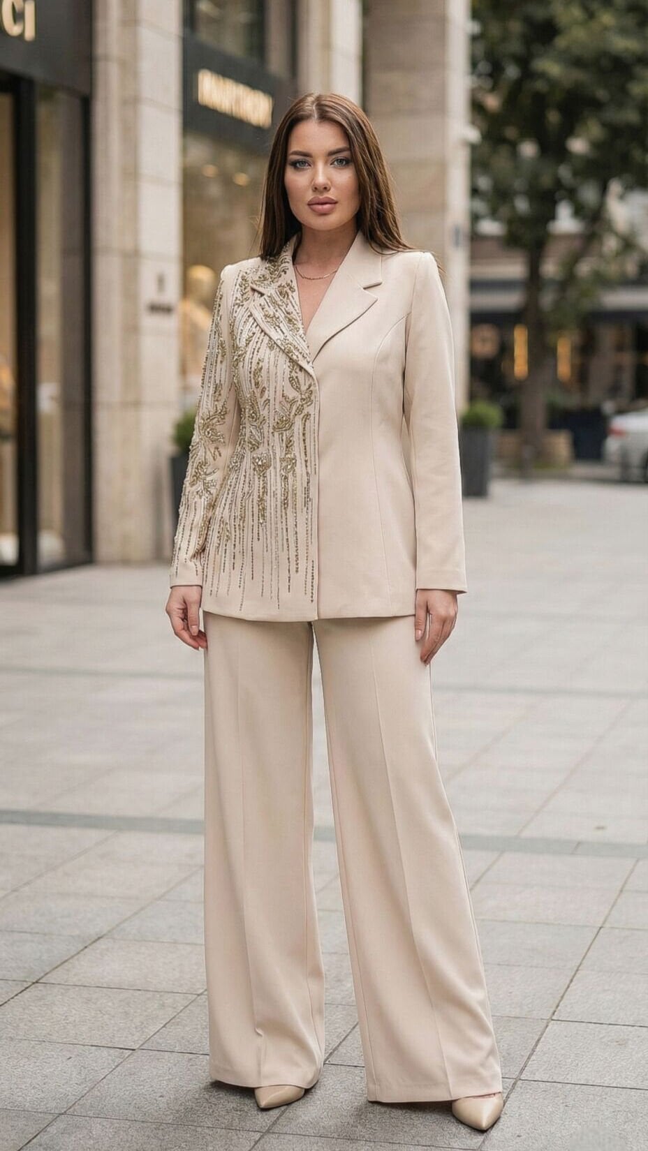 Doğaner Women Model 4429, taş işlemeli detayları ve pantolon–ceket uyumuyla özel gün kombinlerinde fark yaratmak isteyen kadınlar için ideal bir seçimdir. Klasik ve modern çizgileri bir arada sunarak zamansız bir stil oluşturur.