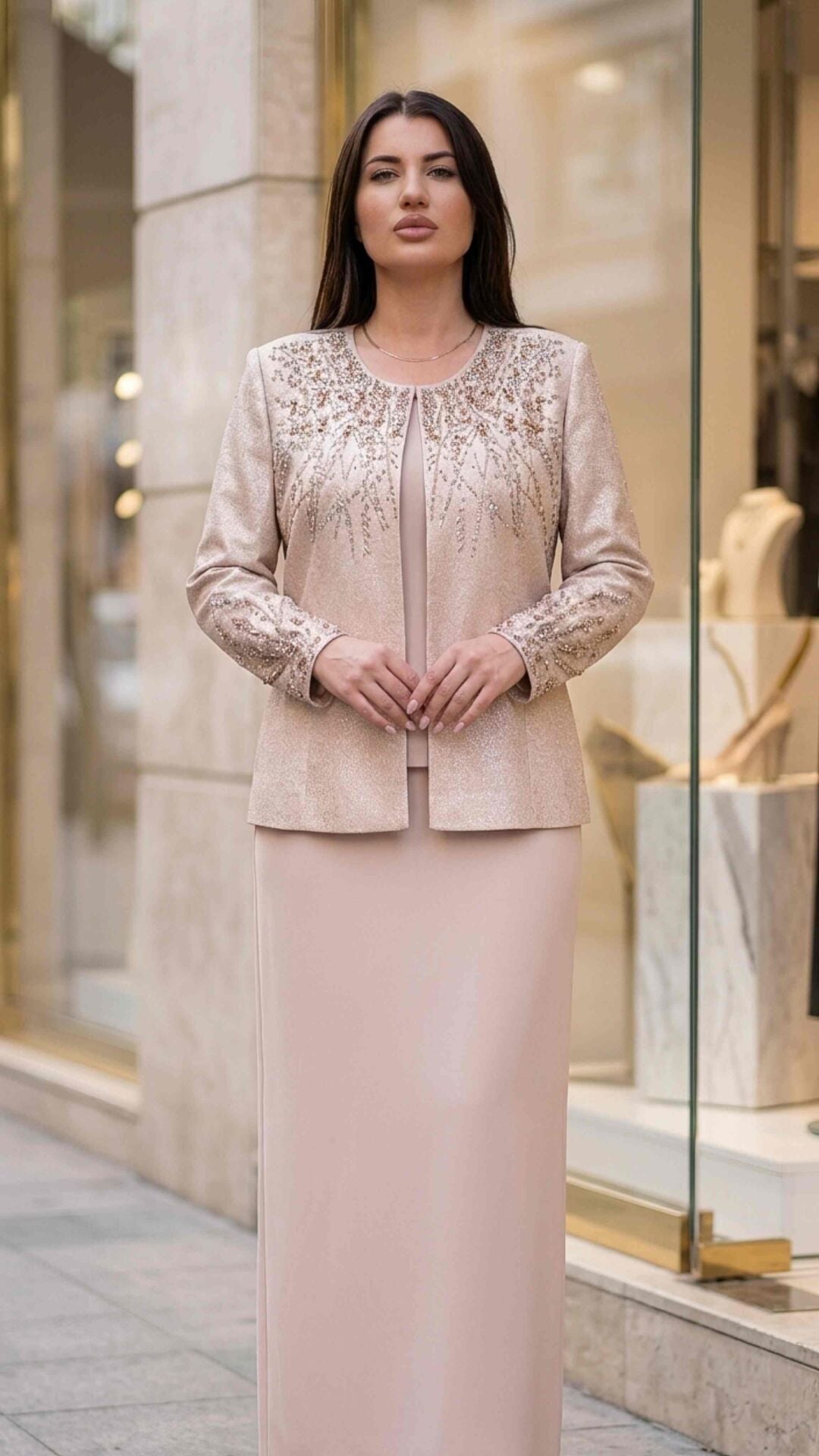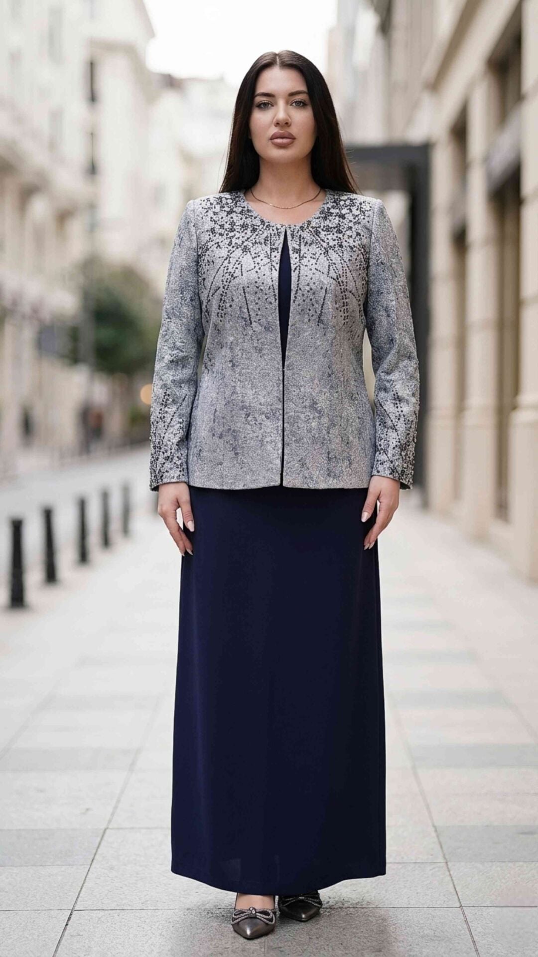 Stoklarla sınırlıdır! Doğaner Women jakar ceket, taş işlemeli kadın abiye takım elbise model 1465’i hemen sepetinize ekleyerek özel günlerde zarafetinizi ön plana çıkarın.