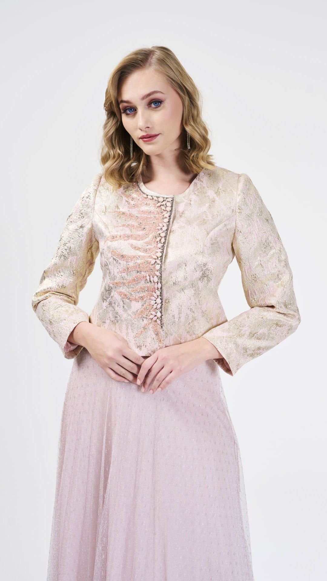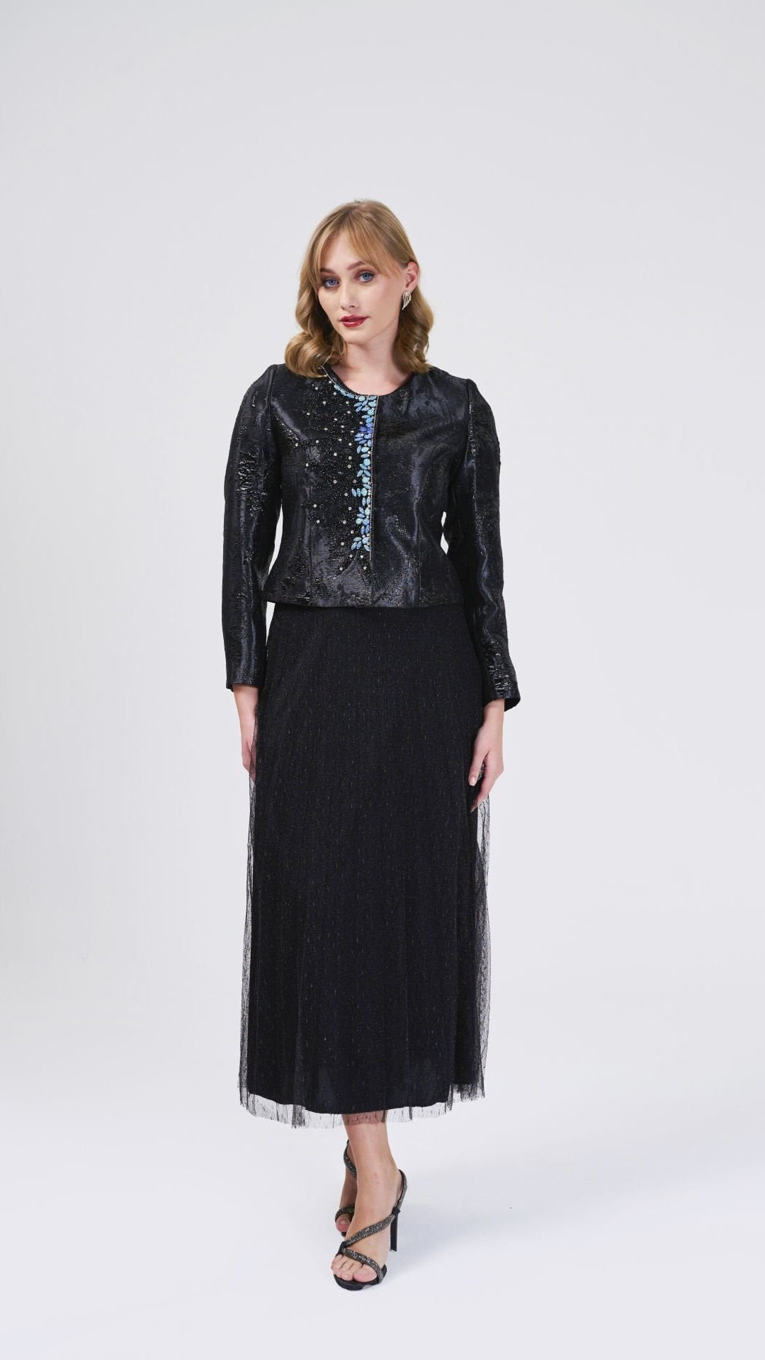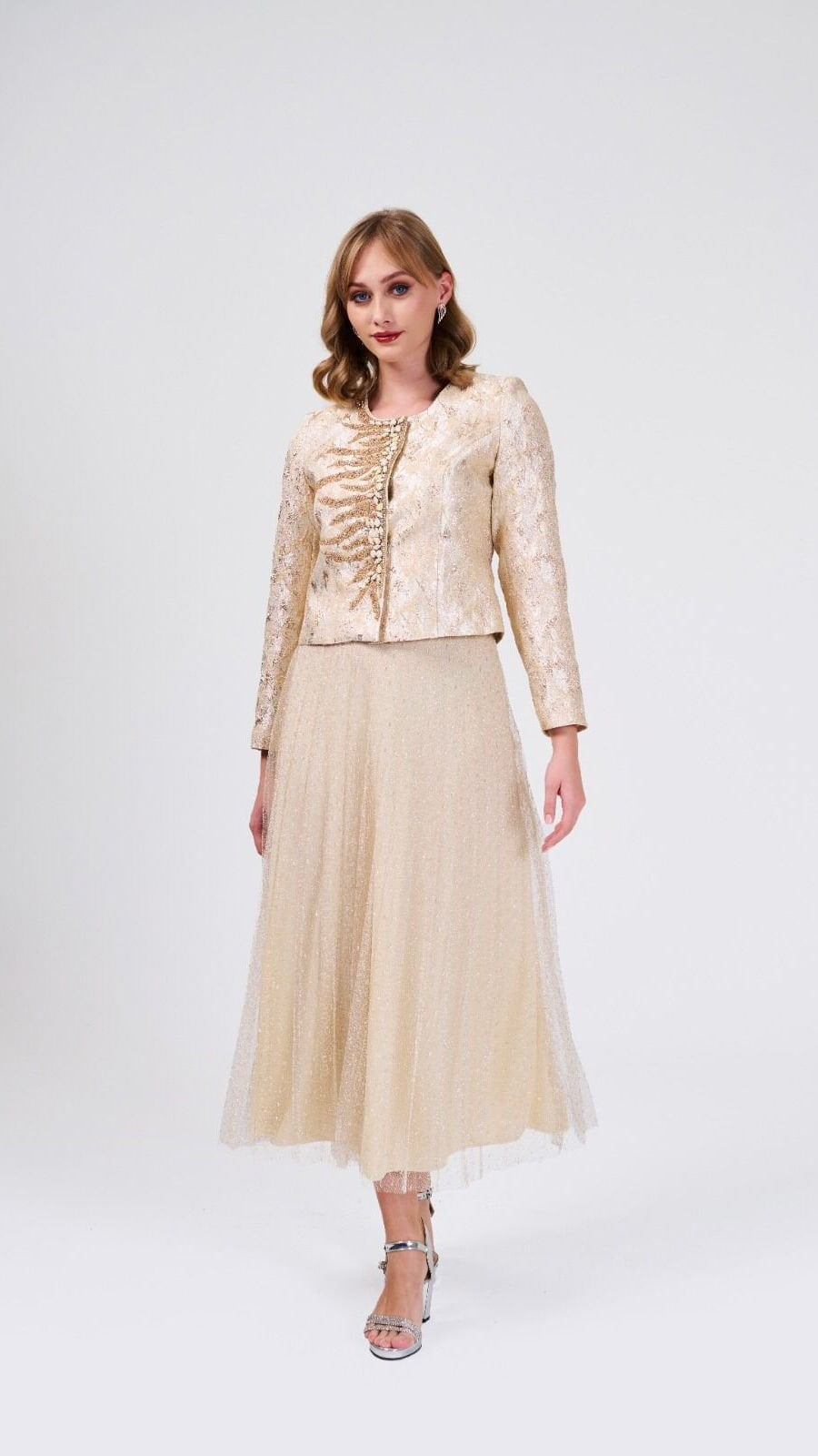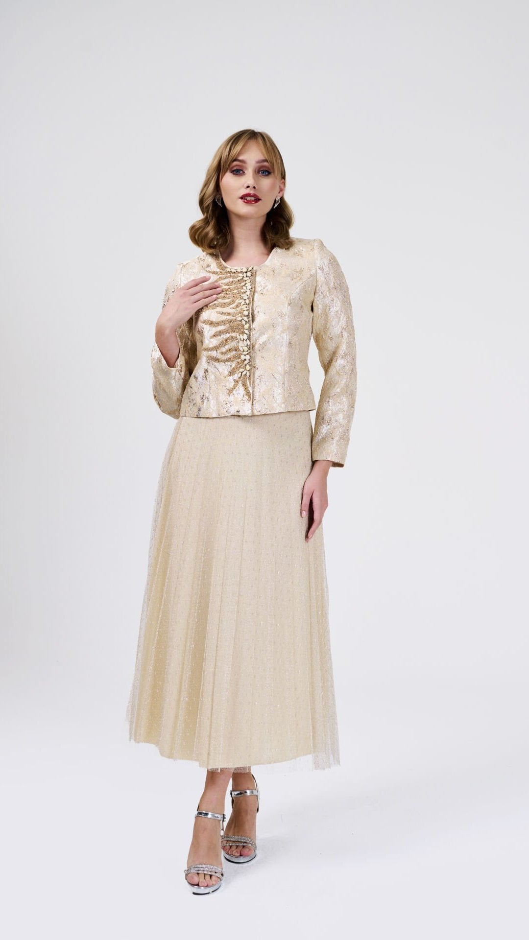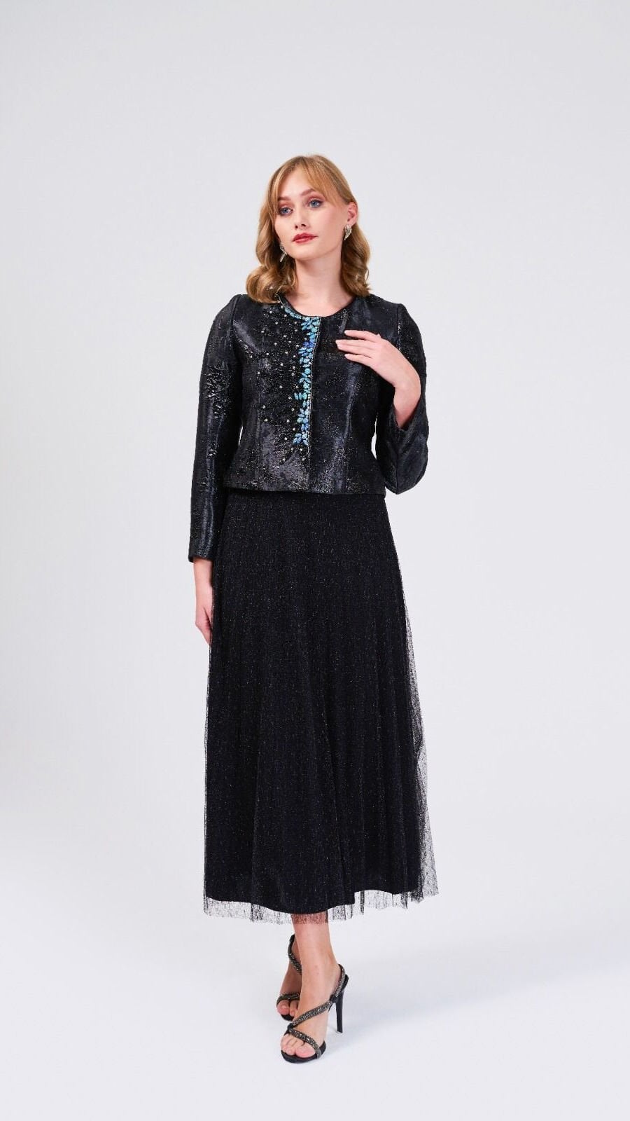 Doğaner Women | Jakar Kumaş, Boncuk İşlemeli, Etekli Kadın Takım Elbise (4199)